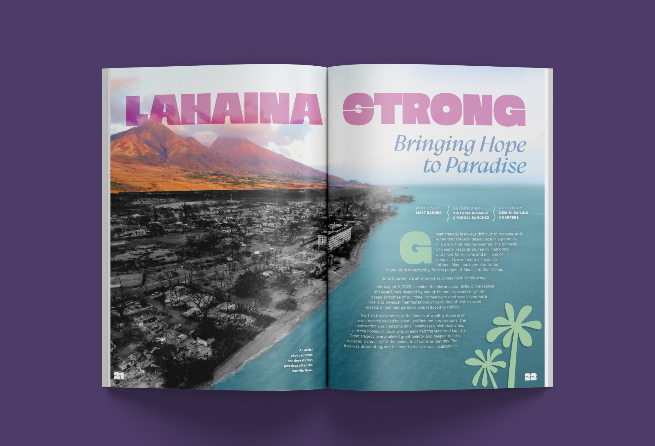 When creating the masthead, I explored a number of options to balance the new look of the Creating Good brand with the proposed moodboard. Initially, the team sought to create a unique masthead for every issue of the magazine, hence the number of options with unique typography similar to inspiration images. Ultimately, the team decided to create a masthead with a timeless look and feel, in order to maintain consistency across future issues, which is how I landed on the polished look to be used for future magazines.